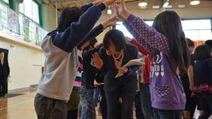 最後は子どもたちの間を抜けて退場です。皆さん本当にお世話になりました。