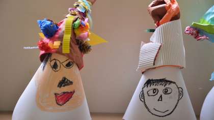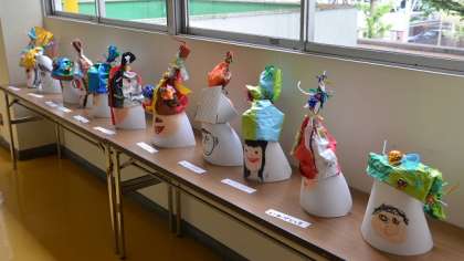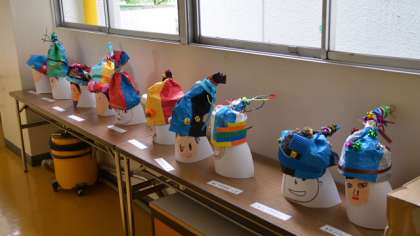 本校2階の図工室前の廊下には、子どもたちの作品がいつも掲示してあります。子どもたちのみずみずしい感性があふれています。ご来校の際には是非お立ち寄り下さい。
