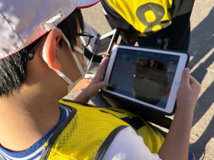 自分に合ったインターバルを決めた後、跳んでいる様子をタブレットに撮ってアドバイスをしたり、自分のフォームを見たりしていました。どうしたらハードルを上手になるのか、タイム計測へ向けて考えていました。