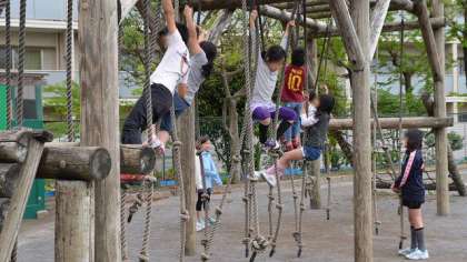 2日、遠足は延期でしたが11時頃まではほとんど雨が降っていなかったため、中休みは校庭で外遊びができました。「今日は遠足には行けなかったけど楽しいよ!」という子どもの声です。