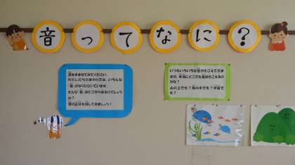 4階音楽室廊下でも、掲示物を工夫して、子どもたちが音楽の学習への関心を高める工夫をしています。この他にも、教室はもちろんのこと、学校のあちこちに学習意欲や関心を高め、やる気を喚起するための工夫を職員がしています。学校公開や授業参観で学校にいらした折りに、ぜひご覧ください。