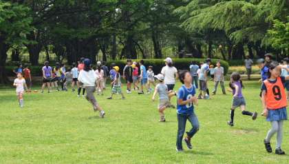 記念写真撮影の後は、希望っ子班ごとの遊びです。事前に各班で何をやって遊ぶか考えてきました。しかし、準備してきたからといって思ったようにならないこともあります。ちょっとしたいざこざも起こります。それでも高学年の子どもたちは、みんなのことを思いやり考えて、一生懸命盛り上げようとがんばります。そんな姿を見て、低学年の子どもたちも高学年の言うことをよく聞いて楽しく遊んでいました。