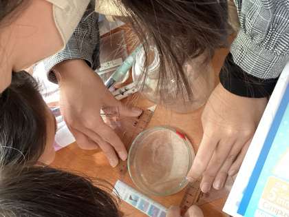 今日は、円周の意味を知り、直径と円周の長さにはどんな関係があるのか実際にいろいろな円の直径の長さと円周の長さを調べてみました。その結果、円周の長さが直径の長さの何倍になっているかを表す数を「円周率」と知り、3.14と表すことも分かりました。
