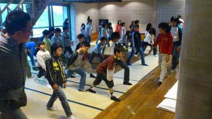 体操もこじんまりと大広間で!睡眠は十分かな?