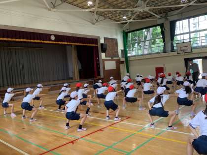 今日は初めの「構え」や「縄を引く動き」などを練習しました。子どもたちは、普段慣れない動きに苦戦しながらもあきらめずに何度も練習をしていました。