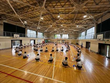 運動会まで残り一週間となりました。今週は雨の日が多く、体育館で隊形の確認を行いました。隊形の移動では、自分の場所を押さえて動きの確認をしっかりと行っていました。練習の時間以外に扇づくりをしました。踊りへの想いがより一層深まったようでした。