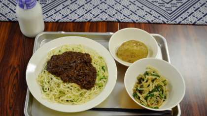 22日のランチルーム給食です。今週は2年生です。今日のメニューは「ジャージャー麺」「もやしのごま風味」「ベークドポテト」「牛乳」です。子どもたちに、何で「ジャージャー麺」と言うか知ってる?と尋ねたら・・・「先生は知っているの?」と聞かれて・・・「あれっ!?」答えることができませんでした。そこでさっそく調べて担任の先生に伝えました。「炸醤」と呼ばれる肉味噌を、茹でた麺の上に乗せた料理のことで、「ジャージャー」や「ジャージャン」と読んだことからこの名前がついているようです。ちょっと辛めの味付けですが、これが結構人気メニューで、喜んで食べていました。