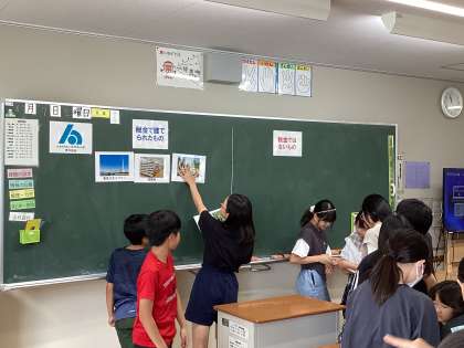 今回のテーマは「税金とは何か、どんな役割をしているのか考えよう。」です。まず身近な消費税を挙げ、物を買ったときの税金は払った後、どこへ行くのか学びました。税金の種類は消費税以外にもいろいろな種類の税金があり、その税金は学校だと校舎や体育館、プール等たくさんの場所に使われていることが分かりました。後半はビデオを観て税金が無いとどんな世の中になるのかを考え、税金の大切さを理解しました。そして、1億円のレプリカを実際に持って重さを体験することができました。