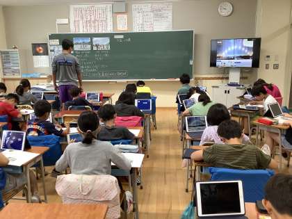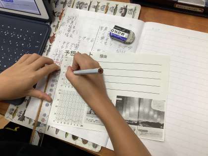 晴れの日と曇りの日では、1日の気温はどのように変化するのか考えました。1日の気温の変化を予想してグラフに表し、友達と話し合って考えを深めていきました。太陽が関係しているのではないかと予想しました。