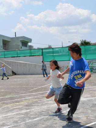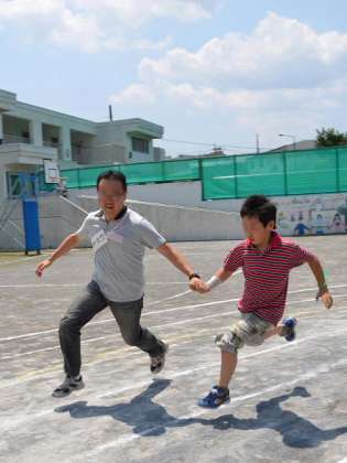 「借り人競走」本校職員もがんばって走りました。子どもには負けていられないぞ!