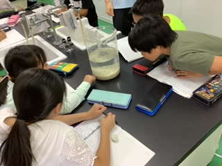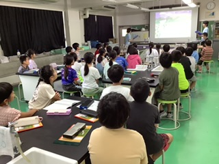 社会科「水はどこから」の学習で水道キャラバンの方を招いて、水道水が私たちに届くまでの水の行方を学びました。水源林やダムのことはもちろん、浄水場の中でどのように水を綺麗にしているか学びました。汚れている水に薬を入れると綺麗な水になる様子を見て、子どもたちは感動していました。