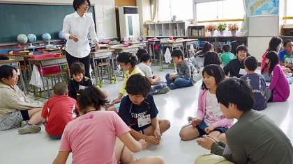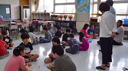31日、5年生にとっては本校で初めての英語活動の授業を行いました。ALTの講師と英語支援員二人が連携して楽しい授業を展開しました。このあと、英語活動は2年目になる6年生の授業も行いました。