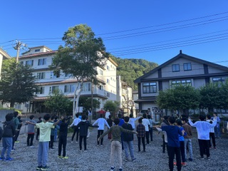 日光に着いて初めての朝を迎えました。気温は19°と肌寒いくらいの快適さです。朝から元気いっぱいの6年生。これから安全に気をつけながら、みんなで協力し、楽しいハイキングをしに行きます!