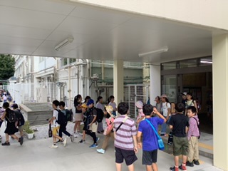 それぞれのクラスが門の前に立って、学校のみんなに挨拶をします。元気の良い挨拶を意識して、みんなを迎え入れていました。