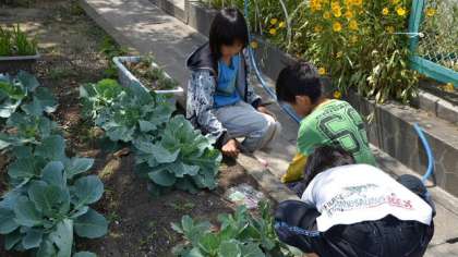 昼休みの時間に、3年生の子どもたちがキャベツの葉についた小さな小さなモンシロチョウの卵をしっかり見つけて、マイパックに入れていました。3年生は今昆虫の育ちを学習しています。一人ずつ容器に入れて卵から育てます。容器のパックやえさのキャベツなどの準備、ご家庭のご協力もお願いします。それにしても、小さな卵をすばやく見つけていたのには感心しました。
