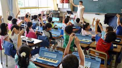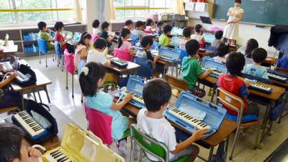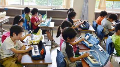 8日5時間目、音楽室で1年生が、楽器は最初が肝心ということで、専門の方をお招きして鍵盤ハーモニカの指導を受けました。基本的な楽器の扱い方からはじまり、わかりやすい指導であっという間にしっかり音が出るようになりました。