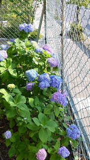 関東地方は、昨日9日から梅雨入りしましたが、10日(日)は晴れて、暑くなりました。梅雨の植物といえばアジサイ。校庭東側のアジサイが咲き、道行く人の目を楽しませています。