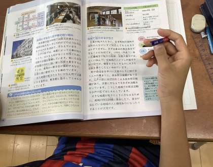 今日は、自分たちでできる地震対策について考えました。一人で教科書や資料をもとに考えた後、友達と分かったことを話し合い、みんなで考えを共有しました。ハザードマップを確認したり、防災訓練に参加したりするなど、できる準備に気付くことができました。