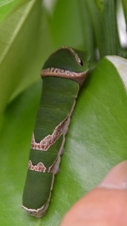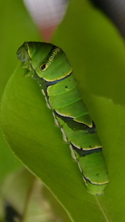 飼育しているアゲハの幼虫の中に見慣れぬやつが・・・クロアゲハの幼虫です。4齢までの幼虫はそっくりだったのに、5齢でこんなにちがいます。おもしろいですね。羽化するのが楽しみです。写真左がクロアゲハ、右がアゲハです。