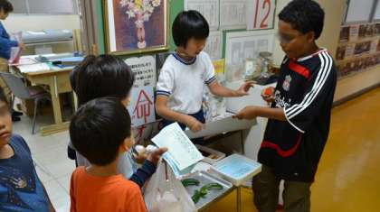 エコ委員会がペットボトルキャップと牛乳パックの回収をがんばっています。ちょうど今の時期は希望丘産、とれたてキュウリを景品としてわたしています。