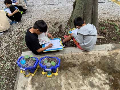 今日は、スティックブロッコリー、芽キャベツ、ベビーニンジンの様子を観察しました。大きさ、長さ、色、形など観察するポイントを考えてよく見てカードにまとめました。