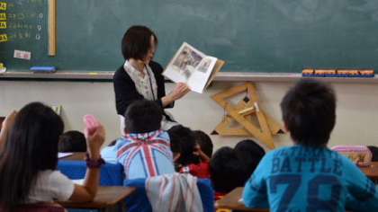 13日朝の読書タイムのようすです。今年度の学校の重点目標の1つ、読書活動の推進に向けて、各学級の保護者の皆さんのご協力を得て、読み聞かせが盛んに行われています。