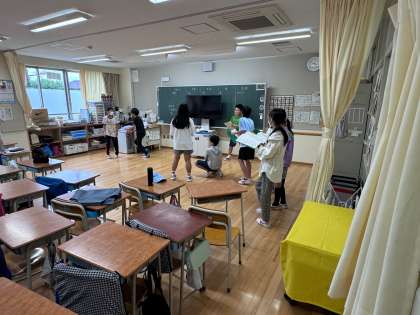 28日(月)の1校時に体育館を片付けて、ひな壇を設置し、第1回目の練習を行いました。最初に実行委員から今日の流れの確認とめあての発表があり、体育館や教室に場面ごとに分かれて練習を行いました。初回だったので台本を見ながら練習していましたが、動きや声の強弱をつけるなど、工夫して取り組む姿が見られました。これからの練習も楽しみです!