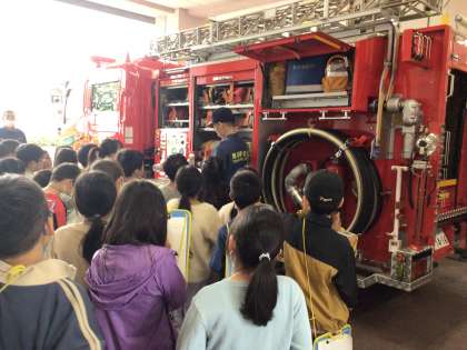 10月28日(月)東京消防庁成城消防署千歳出張所に見学に行きました。消防士の1日の仕事の内容を聞いたり出張所の中の様子を見させていただいたりしました。地域を火事から守る人の仕事について知ることができました。