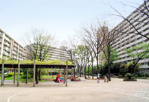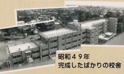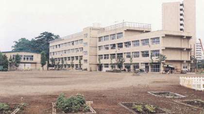 昭和40年代後半に、土地の有効利用のため周辺の造成工事が始まり希望ヶ丘団地ができました。上の写真は現在の希望ヶ丘団地です。このため一気に周辺の小学校の児童数が増えたため、昭和49年に希望丘小学校が開校しました。学区再編成により、船橋小学校、八幡山小学校、経堂小学校に通う児童が集まって、12学級のスタートでした。中段の写真は希望ヶ丘団地から撮ったできたての校舎。下の写真は昭和53年の校舎を南東方向から撮った写真です。開校当初は東校舎の4階と現在の東階段、そして一番東側のランチルームがある部分はありませんでした。