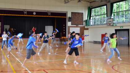 もうすぐ5・6年生が合同の「みかぐら」練習を始める時期が近づいてきました。6年生が5年生に踊り方を指導して、運動会で披露します。それを控えて、6年生が練習をがんばっています。ずいぶんじょうずになりました。