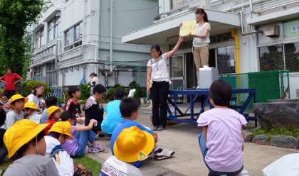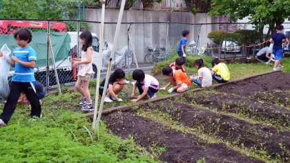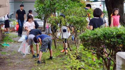 台風一過の20日、5校時に「地域美化タイム」を行いました。今日は、「希望っ子班」ごとにわかれ、手分けして学校の敷地内と烏山川緑道の草取りとゴミ拾いを行いました。
