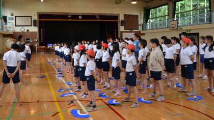 5年生は今まで運動会でみかぐらを見てきましたが、踊るのは今日が初めてです。思ったより難しい動きに戸惑いながらも一生懸命です。6年生も自分で踊るのと教えるのはちがうことを、感じたようです。これから定期的に合同の練習を行い、5年生も踊りを覚えていきます。5年生解散後、5年担任から6年生への激励の言葉もありました。