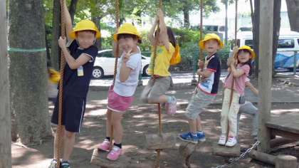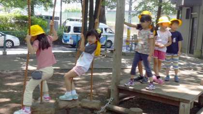 せっかく公園に行ったので、みんなで遊具を使って遊んできました。クラスみんなで仲良く工夫して遊ぶのも勉強です。