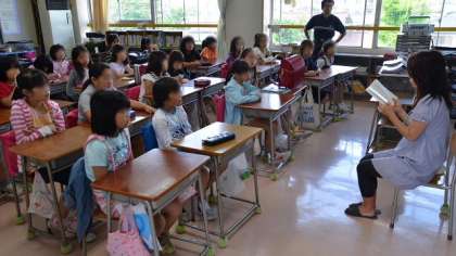 27日朝、各学級で読書タイムです。1年生は担任が読み聞かせ、3年と4年は保護者の方が読み聞かせをしてくださいました。子どもたちは読み聞かせが大好き。夢中になって聞いていました。