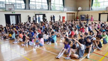 29日朝、体育館で行った児童集会は、先日の開校記念集会に続いて「希望丘小学校歴史クイズ」をしました。初代の校長先生の名前や、過去最高の児童数、開校から何年目、教育目標の言葉など、希望丘小学校児童として知っておいてほしい事を集会委員会がクイズにしてくれました。けっこう難しい問題もありましたが、みんな一生懸命考えて答えていました。