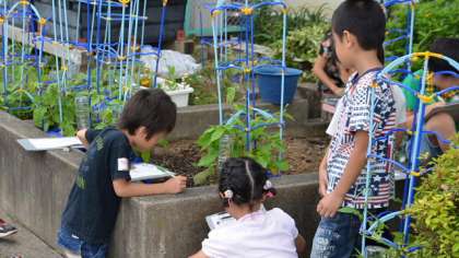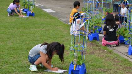 29日(金)、1年生の生活科のようすです。毎日欠かさず水やりをして大事に育てているアサガオの観察カードをかきました。みんな自分のアサガオを愛おしそうに眺めて、気がついたことをカードに書き込んでいました。もうすぐ咲きそうな花芽を数えては、いつ咲くか楽しみにしているかわいい1年生です。