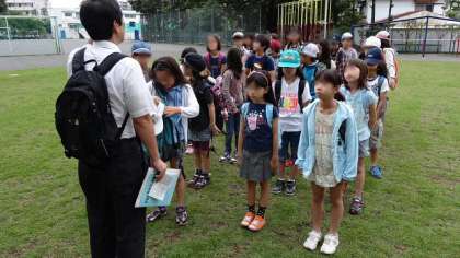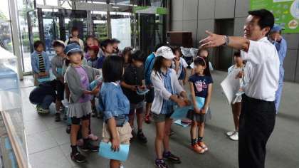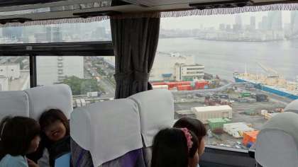 7月2日(月)、4年生が貸し切りバスで社会科見学に出かけました。校庭で出発式を行い、8時30分出発。用賀から首都高速道路でレインボーブリッジを通って、最初の目的地中央防波堤埋め立て処分場へ向かいました。車窓から見る東京の景色にみんな興味津々。道路が空いていたので予定より早く目的地に着くことができました。