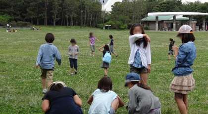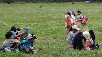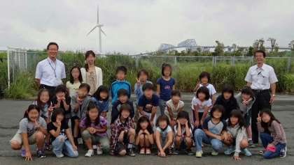 処分場の施設を見学した後、バスは大きな風力発電の施設のそばまで行き、みんなそこで降りて見学をしました。遠くで見ているよりはるかに大きな風車を見上げて、みんな歓声をあげていました。1時間半あまりの見学の後、バスでお台場の潮風公園で昼食をとりました。海が見える広々とした公園で、のんびりお弁当を食べて、少し遊びました。