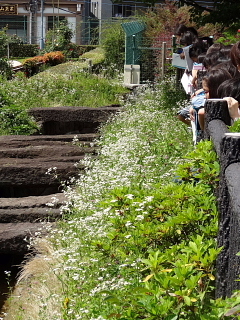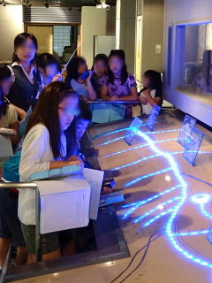 水道歴史館のようすです。左は外に展示してあった「石樋(せきひ)」を見る子どもたち。中は発掘されて館内に展示してあった本物の「木樋(もくひ)」。江戸時代に石を組み合わせたり、木を加工して水がもれないような水路や水道管が造られていたことにびっくりです。右の写真は玉川上水や神田上水など、江戸の町につながっていた水路の説明模型を見る子どもたち。昔の人の努力や技術に驚いていました。天候にも恵まれ、とてもよい社会科見学になりました。