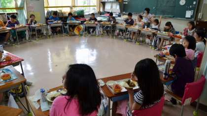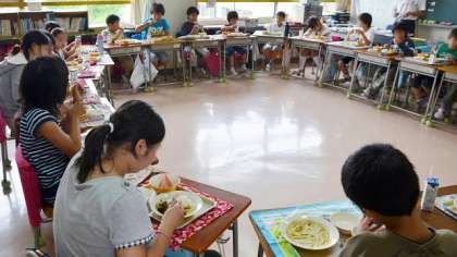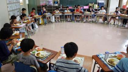 6日の給食は1年生から6年生がグループをつくっている「希望っ子班」で給食を食べました。今日のメニューはみんなが大好きなカレーライス。しかも夏野菜がたっぷりはいったカレーです。給食を食べながら、来週の休み時間に行う「希望っ子班遊び」の計画について話し合いました。結成から3ヶ月がたって、みんな互いの顔や名前もしっかり覚えて、話しがはずむようになってきました。