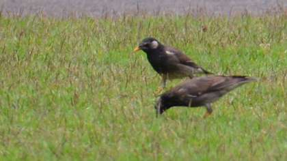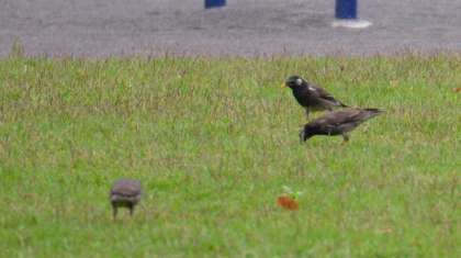 校庭の芝生にムクドリがたくさん飛んできて、芝生をつついている光景が毎朝見られます。何を食べているのでしょうか? 芝生の生育状況があまり良くないので、夏休みにはいってすぐ養生作業をすることになり、芝生の使用制限をすることになりました。期間については後日詳しくお知らせします。