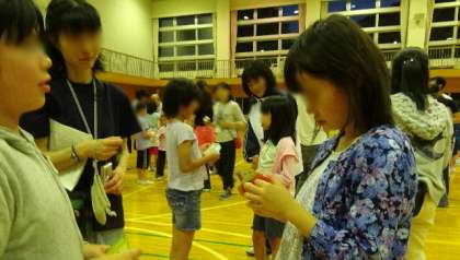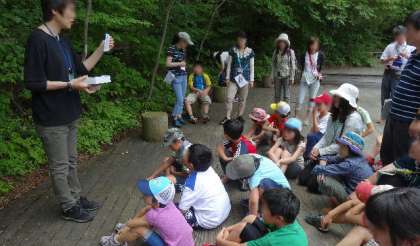 ネイチャービンゴでは、研究所の指導員さんに専門的なアドバイスをいただきながら、自然のすばらしさにふれました。昼食をとり、再びバスで、中学校が移動教室で使っている河口湖の施設に移動。開室式や学級レク、夕食をとってからは、全体レクなどで楽しいひとときをすごしました。