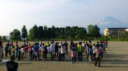 10日(火)、のぞみ学級河口湖移動教室2日目です。今日も天候に恵まれ、朝から富士山が見えました。朝会で体操を元気よくやって、少し散歩をしました。気持ちのよい朝の湖畔を満喫しました。