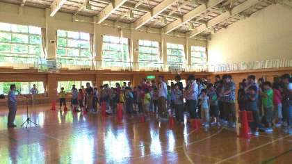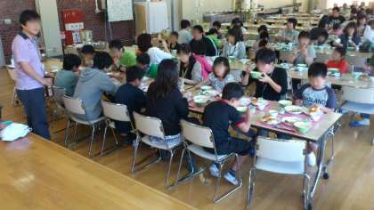 3日間の移動教室、学園で食べる最後の朝食。部屋に戻って片付けや掃除をして、体育館で閉室式を行いました。