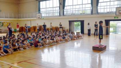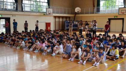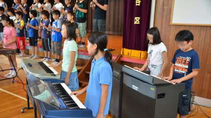 次に合奏の披露です。音楽の時間、パートに分かれて練習してきた成果の発表です。