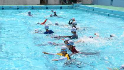 13日(金)1・2時間目に、3・4年生が着衣水泳をしました。本校では夏休み前に万が一の水の事故に備えて3年生以上で行っています。家からもってきた服と靴を身につけて水に入ってみると、想像していたより動きにくいことに戸惑います。でも力を抜くとふんわりと浮くことができることを経験しました。また、持参したペットボトル一個でも、楽々浮くことができるのも、よい経験になったと思います。