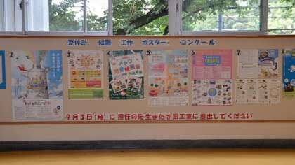 夏休みの作品募集などのポスターがまとめて2階の掲示板に貼ってあります。来校の際はぜひ見て、どんどん応募して下さい。