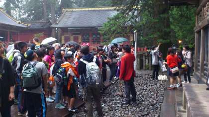 東照宮、最後の見学は有名な三猿です。小雨の中でしたが、しっかり見学できました。