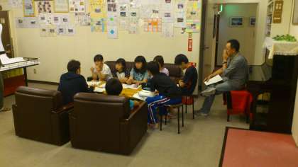 9時15分、寝る前に班長会議で、1日を振り返り、明日の予定を確かめました。ご苦労様。9時30分消灯。おやすみなさい。