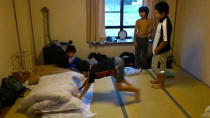 希望丘小学校日光林間学園、2日目。おはようございます。朝6時起床。ふとんの片付け中です。